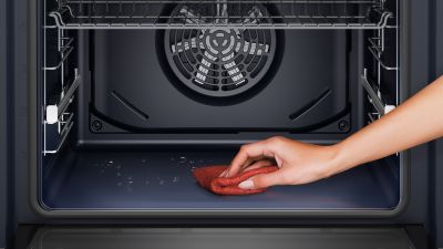 Однако эмалевое покрытие может повреждаться от абразивных средств и жестких щеток. Со временем на поверхности могут появиться микротрещины, в которые проникают загрязнения. Этот метод подразумевает регулярную ручную очистку после каждого использования духовки.