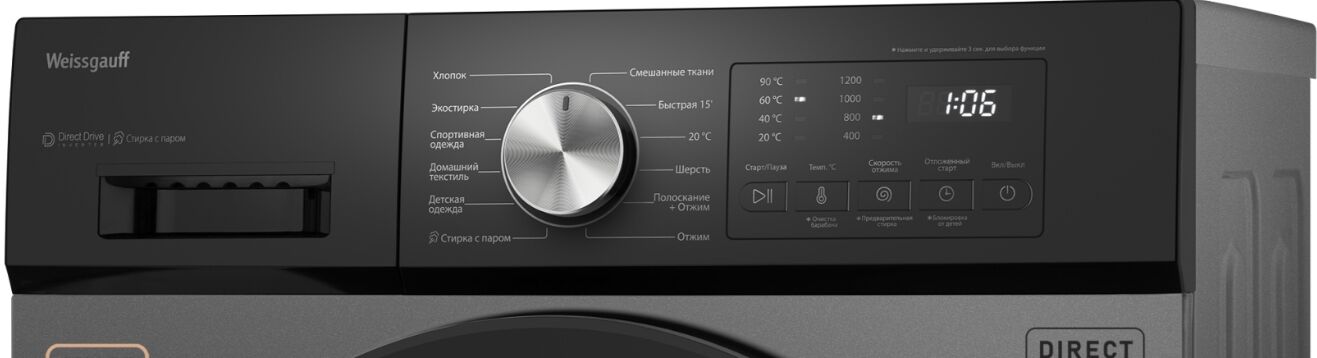 Почему стоит выбрать Weissgauff WM 45127 Direct Drive Inverter Steam Deep Grey?