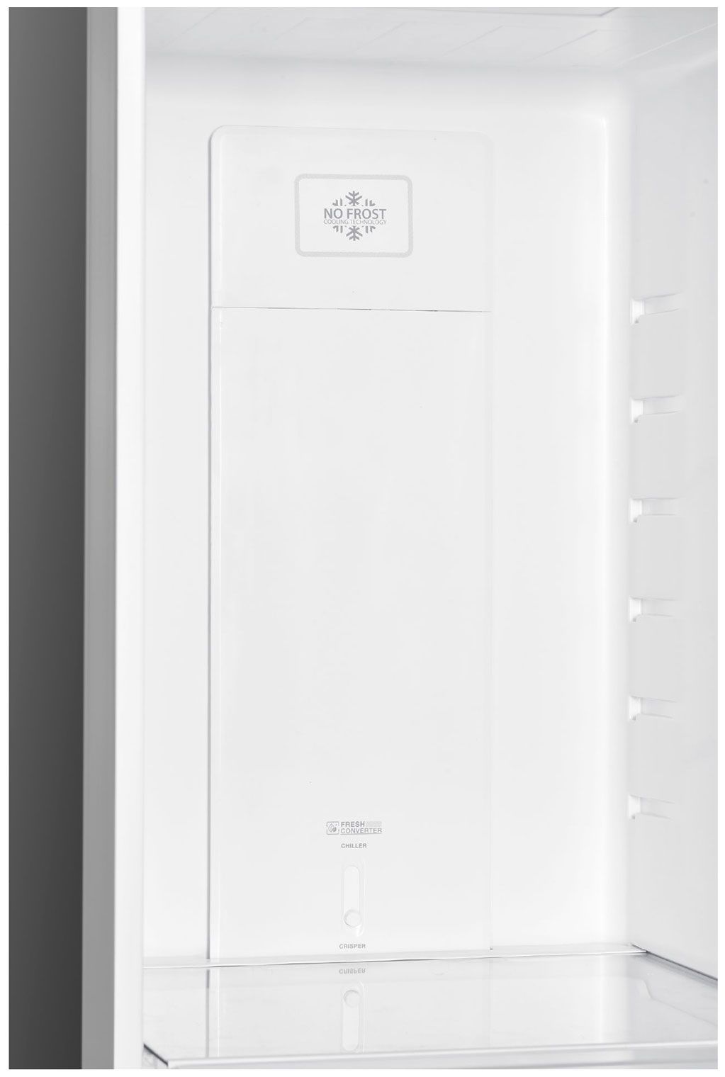 - Полная система No Frost с принудительной циркуляцией – автоматическое размораживание обеих камер. Исключает ручное обслуживание, предотвращает образование наледи и поддерживает идеальную влажность для длительного хранения продуктов.