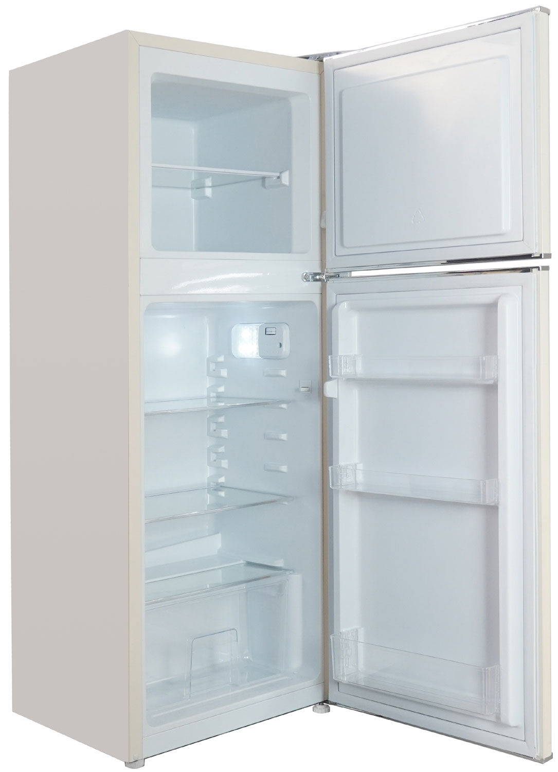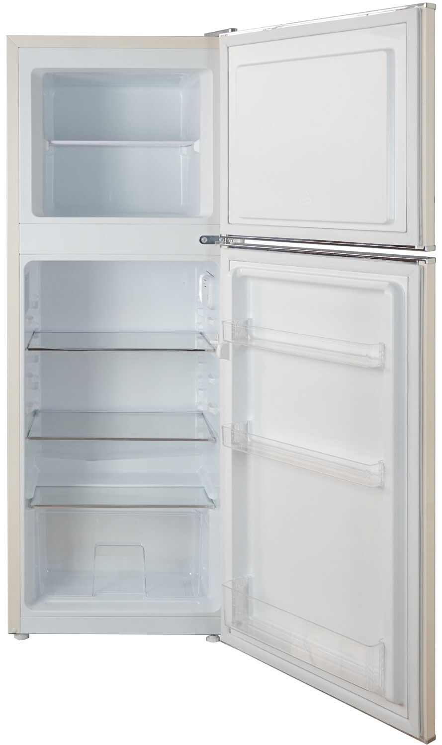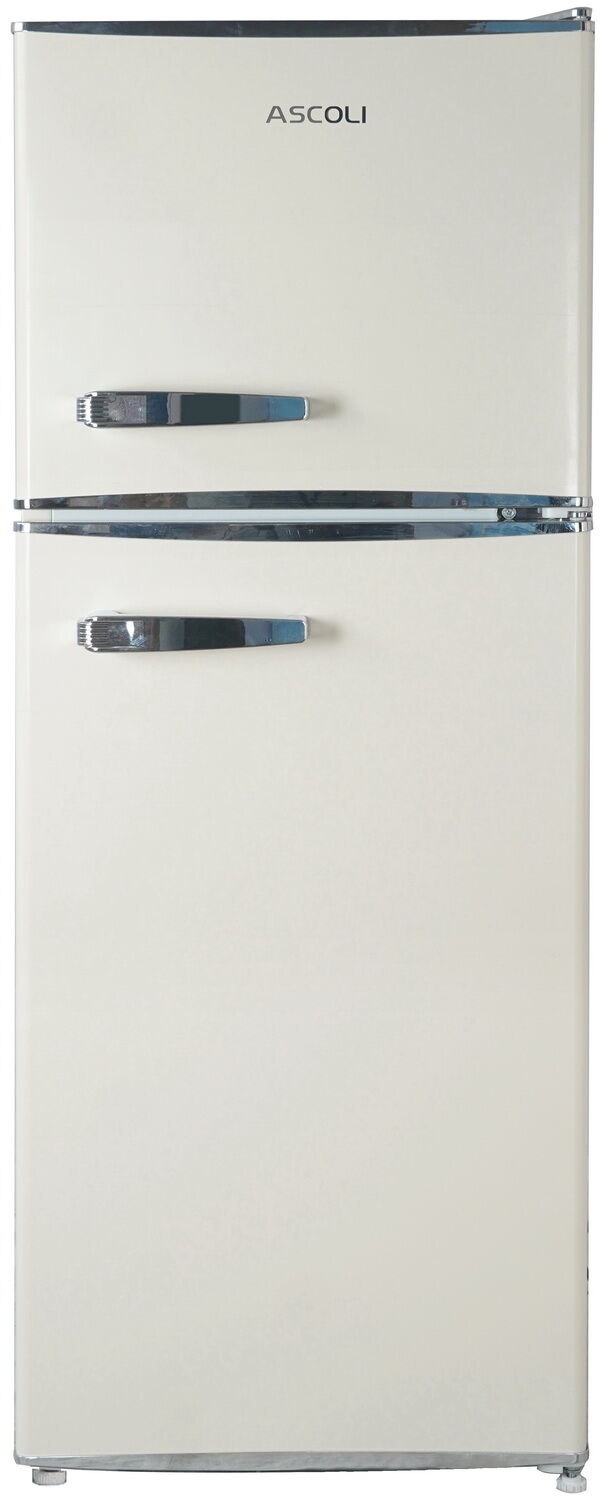Двухкамерный холодильник Ascoli ARDFRY120 – уютный кремово-жёлтый цвет, 128 литров, класс А+ и верхняя морозилка 36 л