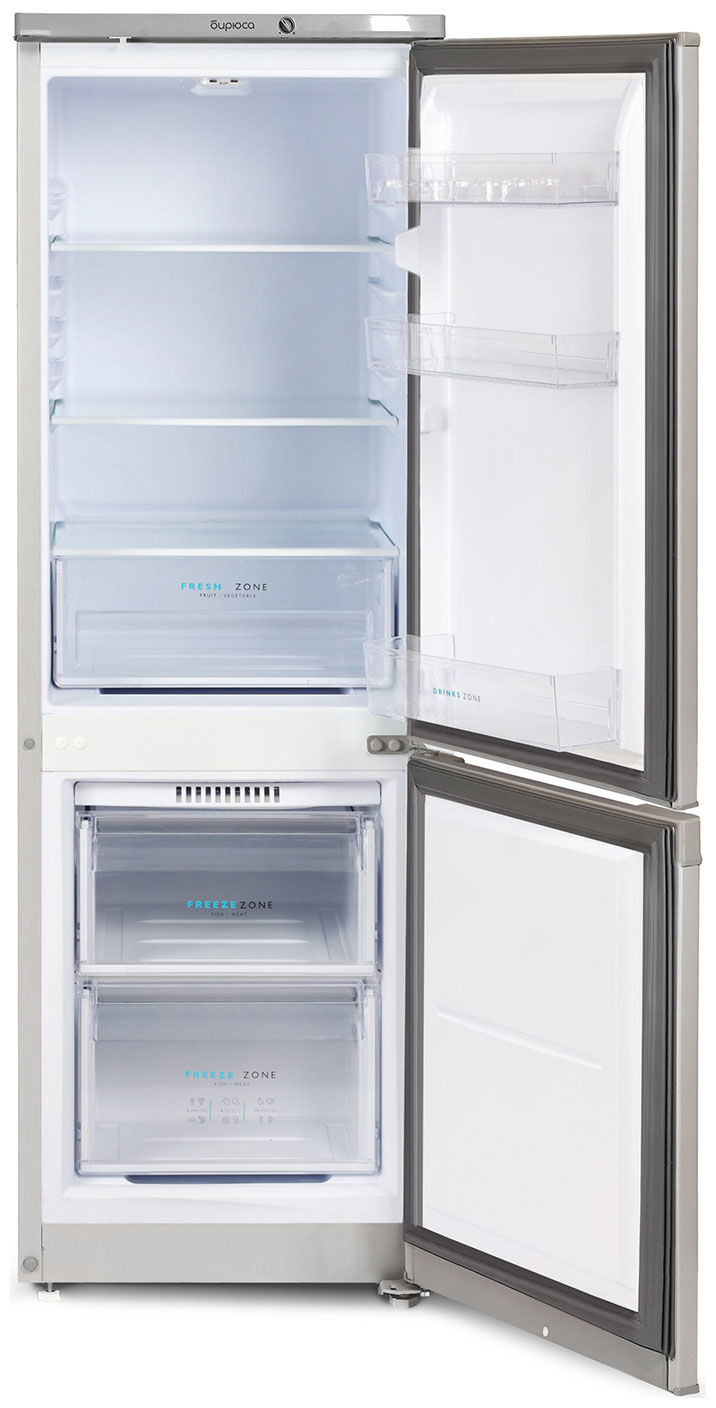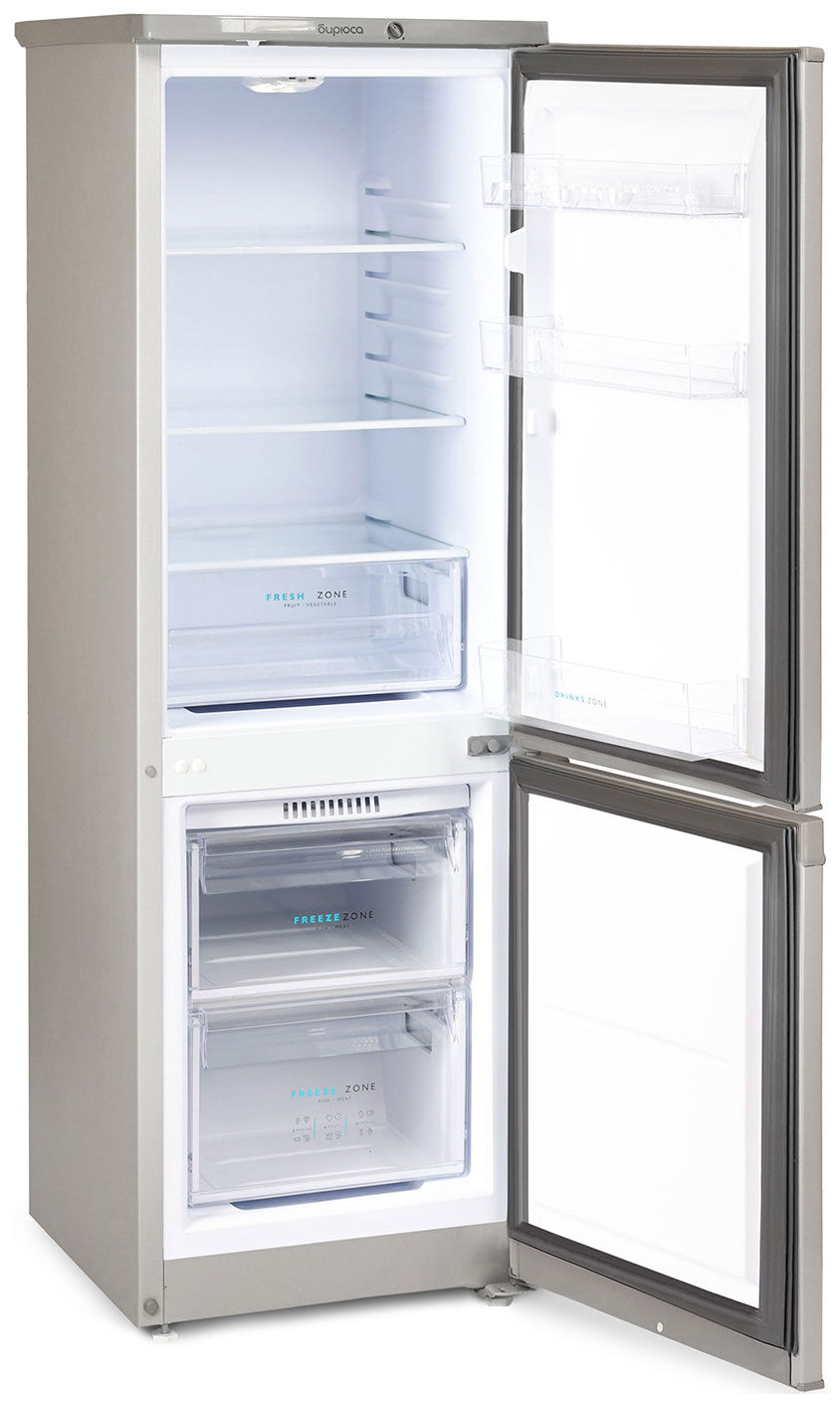 Двухкамерный холодильник Бирюса M418 – цвет металлик, 180 литров, нижняя морозилка 55 л и автоматическое оттаивание