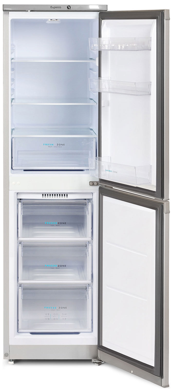Двухкамерный холодильник Бирюса M420 – цвет металлик, 205 литров, нижняя морозилка 80 л и мощность замораживания 7 кг/сутки
