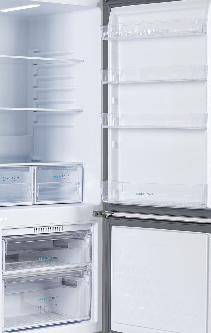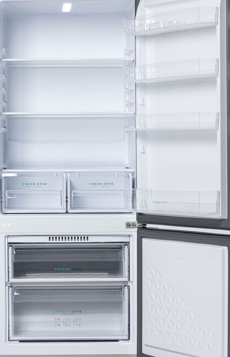 - 2 выдвижных ящика в морозильной камере – удобная сортировка заморозки – 2 ящика позволяют раздельно хранить мясо, рыбу, овощи и полуфабрикаты. Всё организовано и легко доступно.