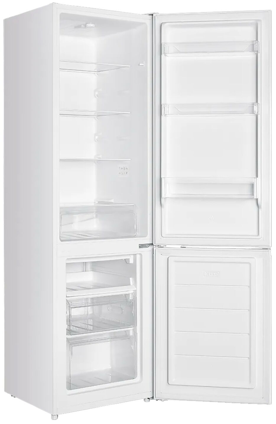 - Тип: двухкамерный отдельностоящий холодильник (с нижней морозильной камерой)