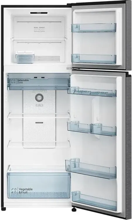 Двухкамерный холодильник Hitachi HRTN6443SXCS – это сочетание японского качества и продуманной функциональности в элегантном серебристом корпусе. Инверторный компрессор обеспечивает тихую, экономичную и надёжную работу, а верхняя морозильная камера объёмом 94 литра обеспечивает удобный доступ к замороженным продуктам. Общий объём 409 литров (315 л – холодильник + 94 л – морозильник) позволяет разместить продукты для семьи из 3-4 человек. Механический ледогенератор и сенсорное управление с внутренним дисплеем – комфорт и стиль в каждой детали.