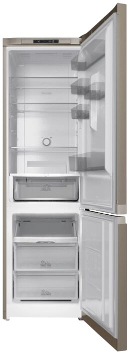Двухкамерный холодильник Hotpoint-Ariston HT 5200 C BZ – это сочетание передовых технологий и роскошного бронзового дизайна. Система Total No Frost полностью исключает образование льда и инея в обеих камерах, избавляя от ручного размораживания. Полезный объём 323 литра (240 л – холодильник + 83 л – морозильник) позволяет разместить продукты для семьи из 3-4 человек. Зона свежести с регулировкой влажности и антибактериальный уплотнитель дверей – свежесть, чистота и долговечность.
