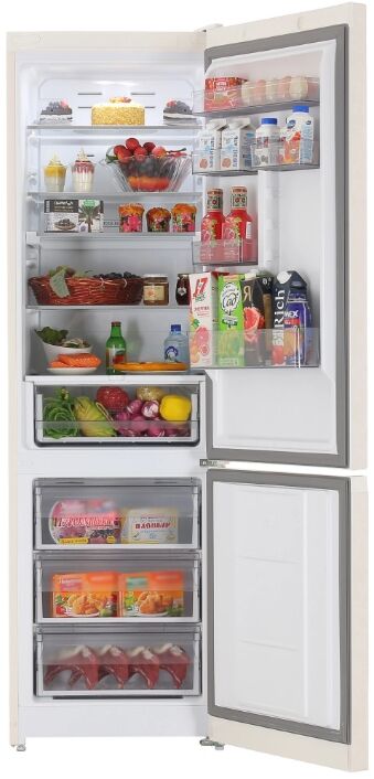 - Зона свежести с регулировкой влажности – сохраняет свежесть овощей и фруктов – специальное отделение с возможностью настройки влажности (влажный режим). Овощи, фрукты и зелень дольше остаются свежими, сочными и полезными.