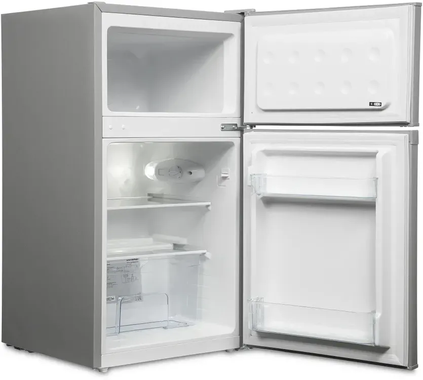 - Полноценная двухкамерная конструкция – отдельные холодильная (59 л) и морозильная (25 л) камеры с собственными дверцами для гигиеничного и удобного хранения любых продуктов.