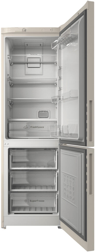 Двухкамерный холодильник Indesit ITR 4180 E в элегантном бежевом цвете – это вместительное и технологичное решение для большой семьи, объединяющее систему No Frost в обеих камерах, увеличенный полезный объём и продуманную организацию. При высоте 185 см и ширине 60 см модель предлагает полезный объём 298 л (220 л в холодильной камере + 78 л в морозильной). Технология No Frost навсегда избавляет от необходимости размораживания, ускоренная заморозка Freezer Control позволяет быстро заморозить свежие продукты, а сверхпрочные полки из ударопрочного стекла выдерживают нагрузку до 100 кг. 4 основные полки в холодильной камере и стильная боковая интегрированная ручка с нанесением TicTac завершают образ.