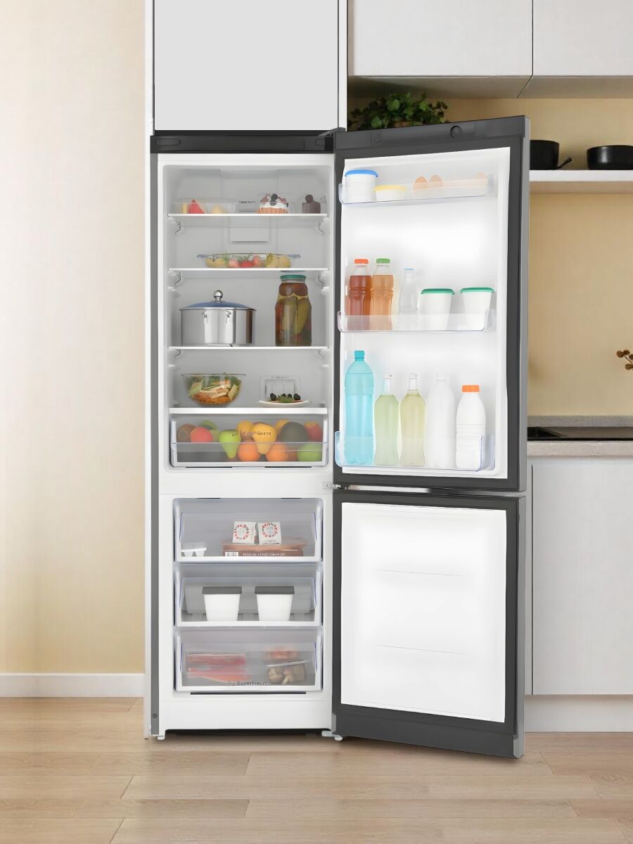Двухкамерный холодильник Indesit ITS 5180 NG в элегантном тёмно-сером цвете – это незаменимый помощник в быту, объединяющий электронное управление, информативный внешний дисплей и передовые технологии хранения. При высоте 185 см и ширине 60 см модель предлагает полезный объём 298 л (220 л в холодильной камере + 78 л в морозильной). Технологии Total No Frost, Push&Go, Super Cool и Freezer Control обеспечивают идеальные условия для продуктов. Внешний электронный дисплей показывает данные о работе холодильника, а сигнал открытой двери предупредит, если вы забудете её закрыть. Сверхпрочные полки из закаленного стекла выдерживают нагрузку до 100 кг.