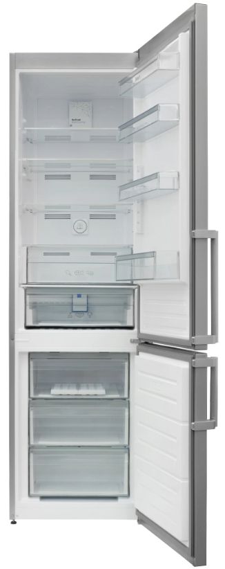 Двухкамерный холодильник Jacky's JR FI2000 в корпусе «нержавеющая сталь» – это вертикальное решение для помещений, где важна экономия ширины. При высоте 201 см и ширине всего 59,5 см модель предлагает полноценный объем 379 л, нулевую зону и передовую систему No Frost без компромиссов в функциональности.