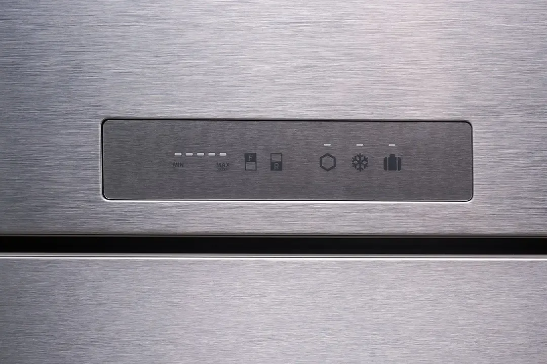 - Строгий серебристый дизайн с алюминиевой ручкой – внешний вид в серебристом тоне с алюминиевой ручкой добавляет ощущение премиальности и прочности. Горизонт 187 см делает прибор заметным, но стандартным для отдельно стоящей установки. Правый дверной упор упрощает организацию пространства.