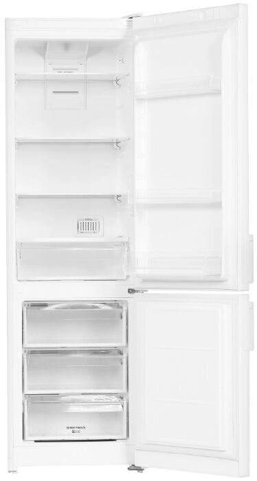 - Качественные материалы и конструкция – 4 стеклянные полки в холодильном отделении, 3 дверных контейнера и 3 секции в морозилке. Двери перенавешиваются под любое расположение кухни.
