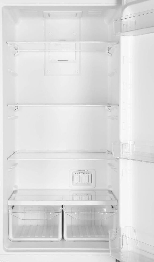 - Внушительный объём 359 литров – для семьи из 4-5 человек – 249 литров в холодильной камере и 75 литров в морозильной. 4 стеклянные полки, 3 дверных полки и ящики для овощей и фруктов – продуманное пространство для любых продуктов.