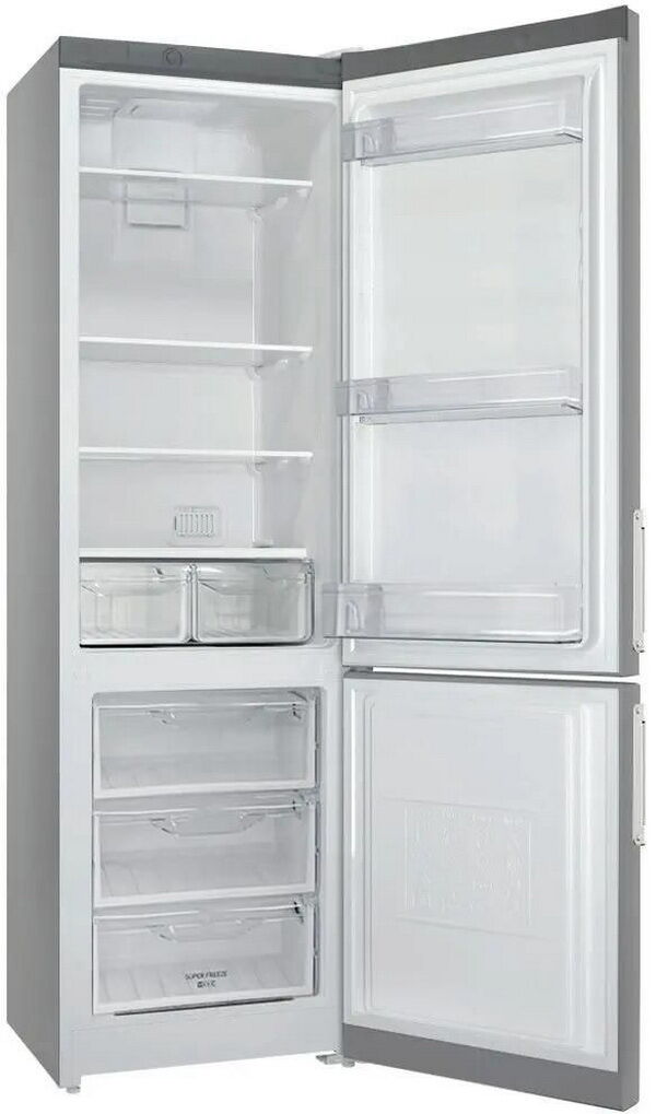 Двухкамерный холодильник Stinol STN 200 DG – это сочетание передовых технологий и стильного серебристого дизайна. Электронное управление с внешним дисплеем обеспечивает точный контроль температурных режимов без необходимости открывать дверцу. Система No Frost в обеих камерах полностью исключает образование льда и инея, избавляя от ручного размораживания. Общий объём 359 литров (249 л – холодильник + 75 л – морозильник) позволяет разместить продукты для семьи из 4-5 человек. Нижнее расположение морозильной камеры с 3 выдвижными ящиками обеспечивает удобный доступ к замороженным продуктам.