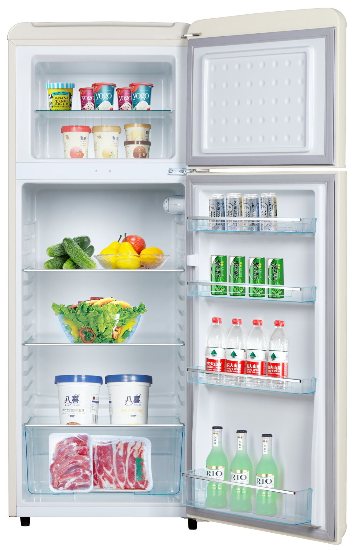- Тип: двухкамерный холодильник (ретро-дизайн)