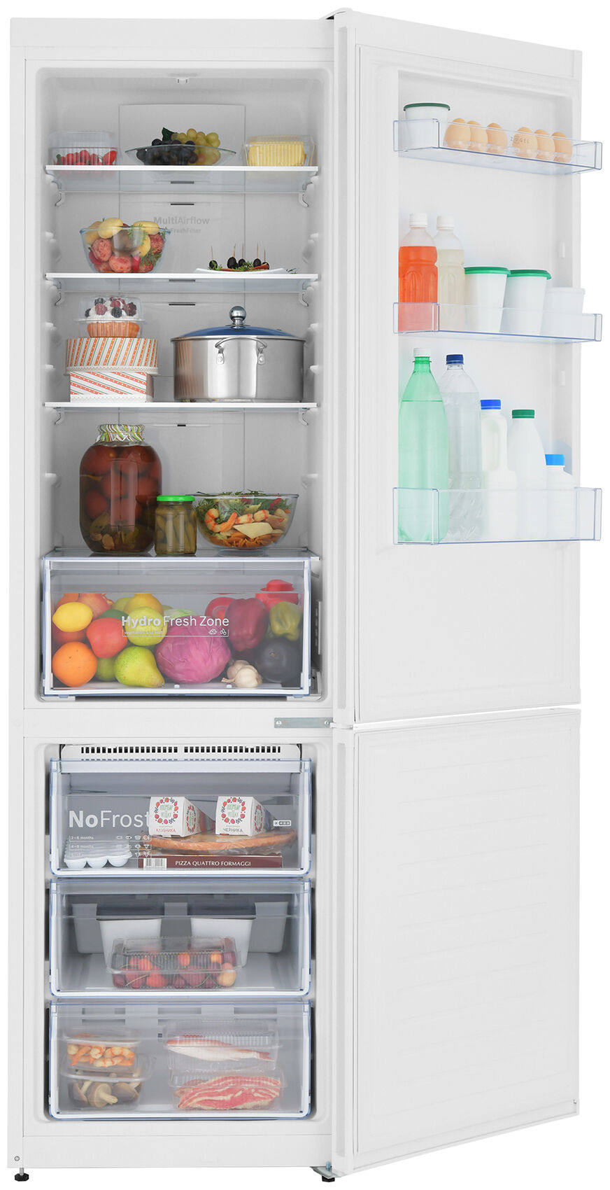 - Система Multi air flow – равномерное охлаждение на каждой полке – система активного динамического охлаждения обеспечивает постоянную циркуляцию воздуха и равномерную температуру на всех уровнях. Никаких «тёплых зон».