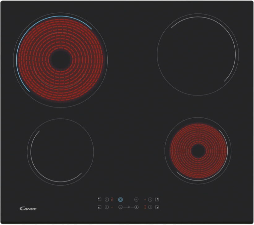 - Комплексная безопасность Candy – панель оснащена защитой от перегрева, отключением при проливе жидкости (автоотключение при попадании воды на сенсоры), блокировкой от детей (защита от случайного нажатия), автоматическим отключением при длительной работе и индикаторами остаточного тепла для каждой конфорки.
