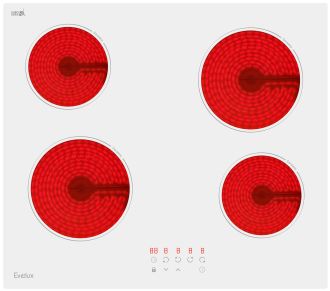 Варочная панель Evelux HEV 640 W – это сочетание элегантного белого стеклокерамического покрытия Eurokera (Франция) и инновационных технологий. Модель шириной 60 см с 4 конфорками идеально впишется в интерьер современной кухни, обеспечивая быстрый нагрев и точный контроль температуры.
