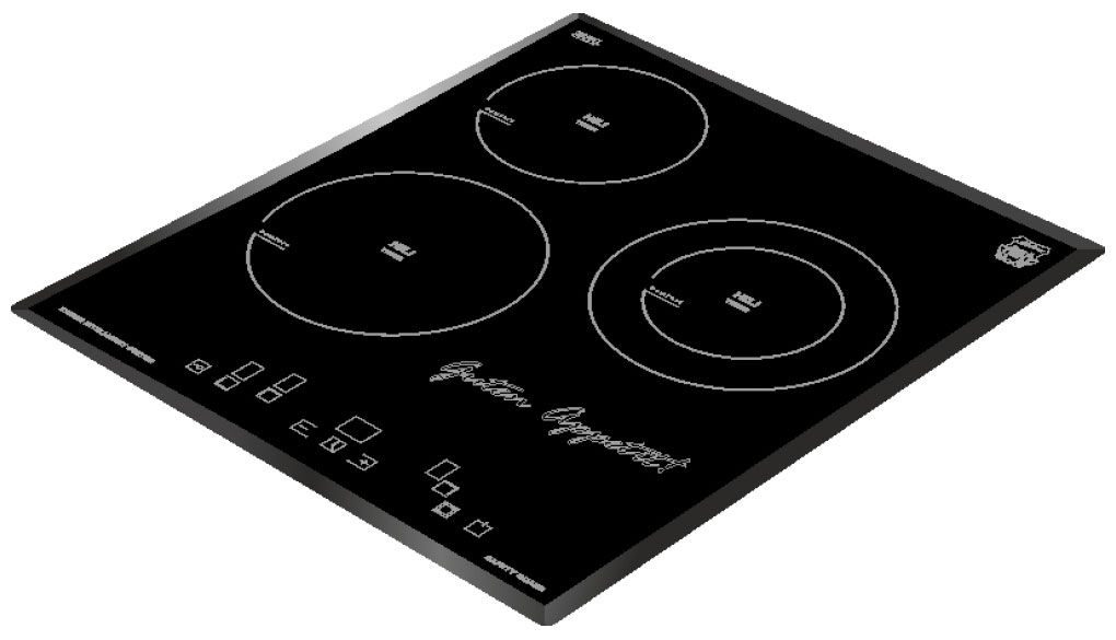 - Три конфорки Hi-Light – оптимальная конфигурация для компактного размещения: 1.0/2.2 кВт (двойной контур), 1.8 кВт и 1.2 кВт.