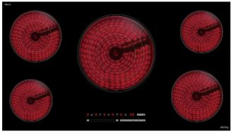 - 5 независимых конфорок HiLight — расширенное рабочее пространство для сложных кулинарных задач. Центральная мощная конфорка с тремя диаметрами нагрева дополнена четырьмя зонами разной мощности и размеров.
