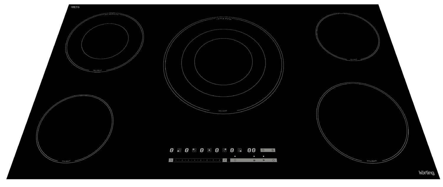 Широкая электрическая варочная панель Korting HK 95309 B в черном безрамном исполнении — это вершина эргономики и возможностей HiLight-технологии. Модель с пятью конфорками, включая центральную трехконтурную, создана для свободного одновременного приготовления нескольких блюд и оснащена уникальной функцией «Stop&Go».