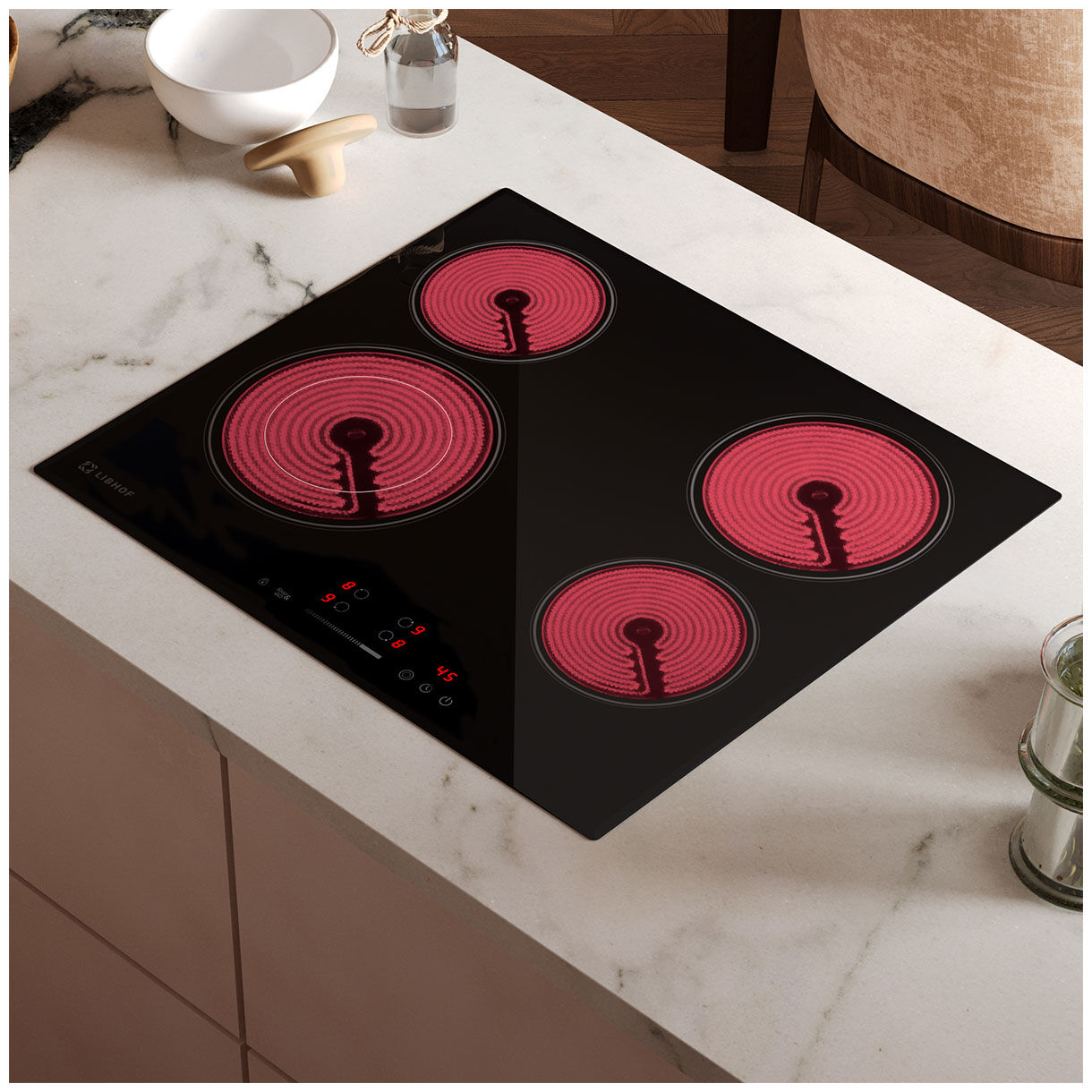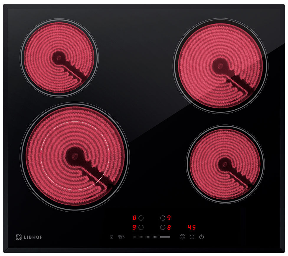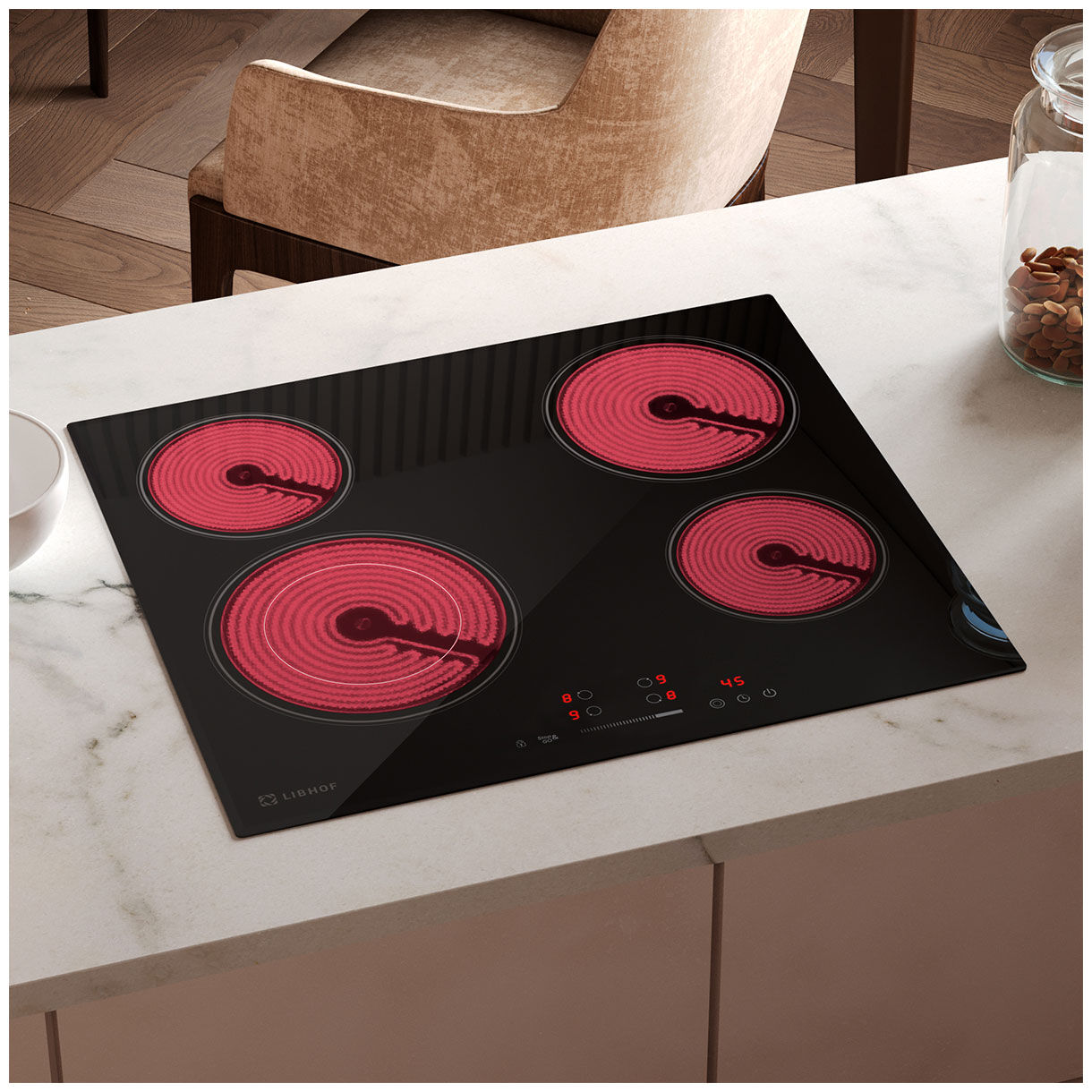 Электрическая варочная панель Libhof PH-64604C – премиальная инфракрасная технология, четыре конфорки быстрого нагрева, радиальная зона и 9 уровней мощности