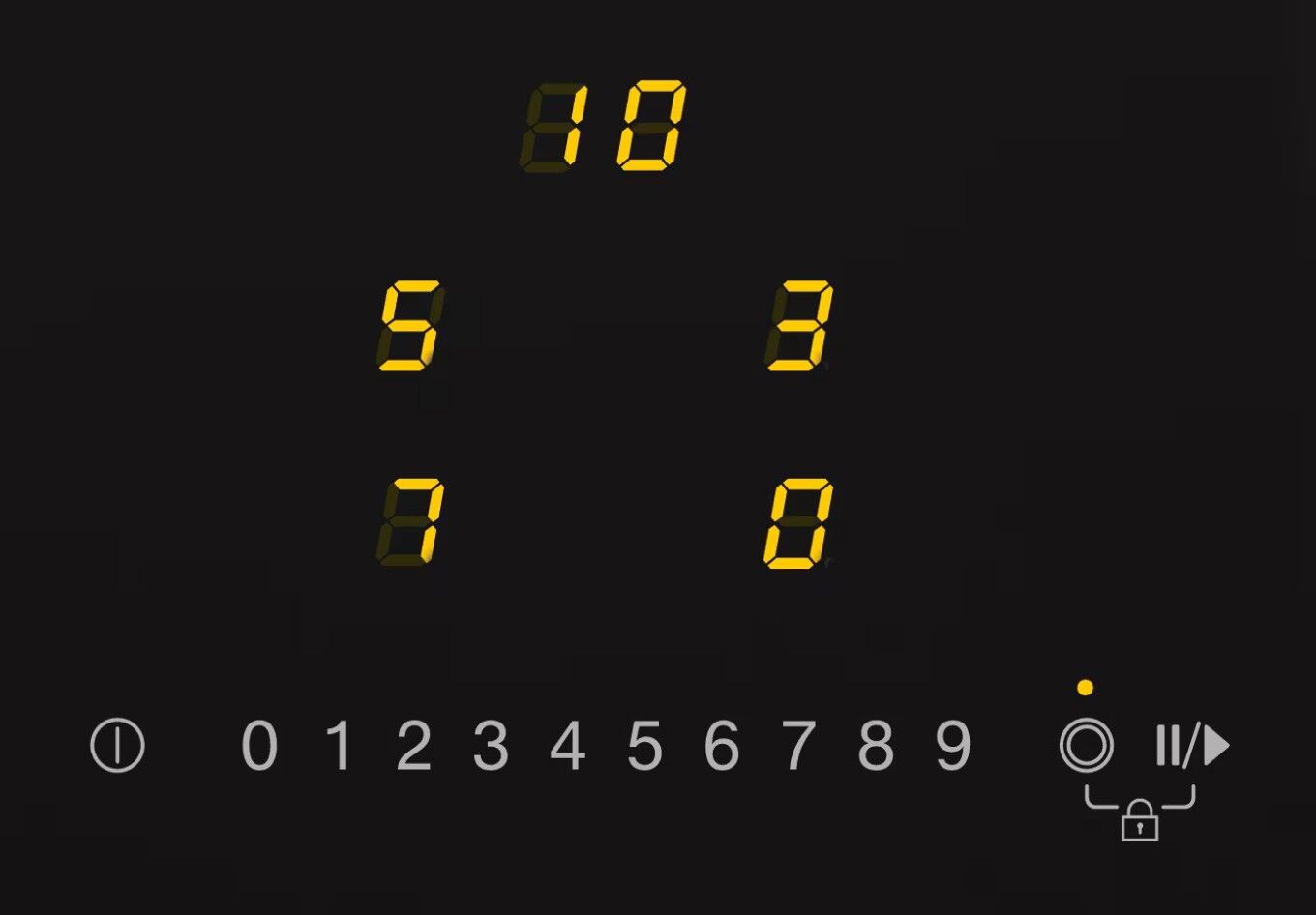 4 конфорки с распознаванием размера посуды, автоматика закипания, поддержание тепла, жёлтый дисплей и установка на уровне столешницы