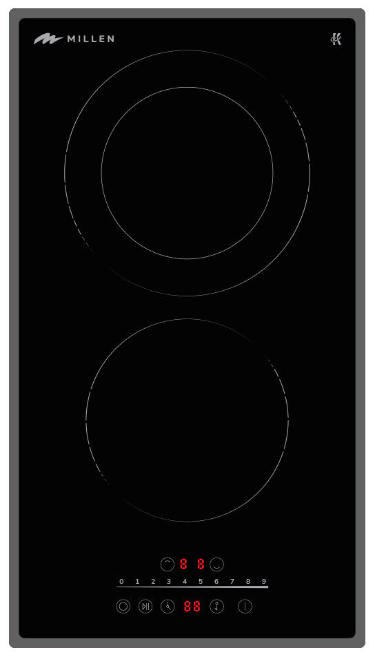 Электрическая варочная панель Millen MEH 302 BL – премиальная компактность, две конфорки Hi Light, двухконтурная зона и функция Stop&Go