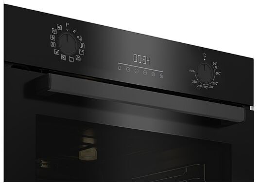 - Утапливаемые переключатели и LED-дисплей – эргономичные ручки утапливаются в панель, что обеспечивает дополнительную безопасность и придаёт духовке лаконичный вид. LED-дисплей с электронным таймером позволяет точно контролировать процесс приготовления.