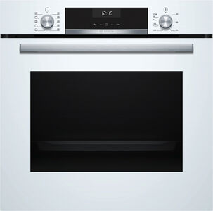 Электрический духовой шкаф Bosch HBG517EW0R из премиальной серии Serie | 6 – это идеальное сочетание вместительности, интеллектуальных технологий и элегантного белого дизайна. Модель объёмом 71 литр оснащена 10 автоматическими программами AutoPilot, паровой очисткой, телескопическими направляющими и доводчиком дверцы.