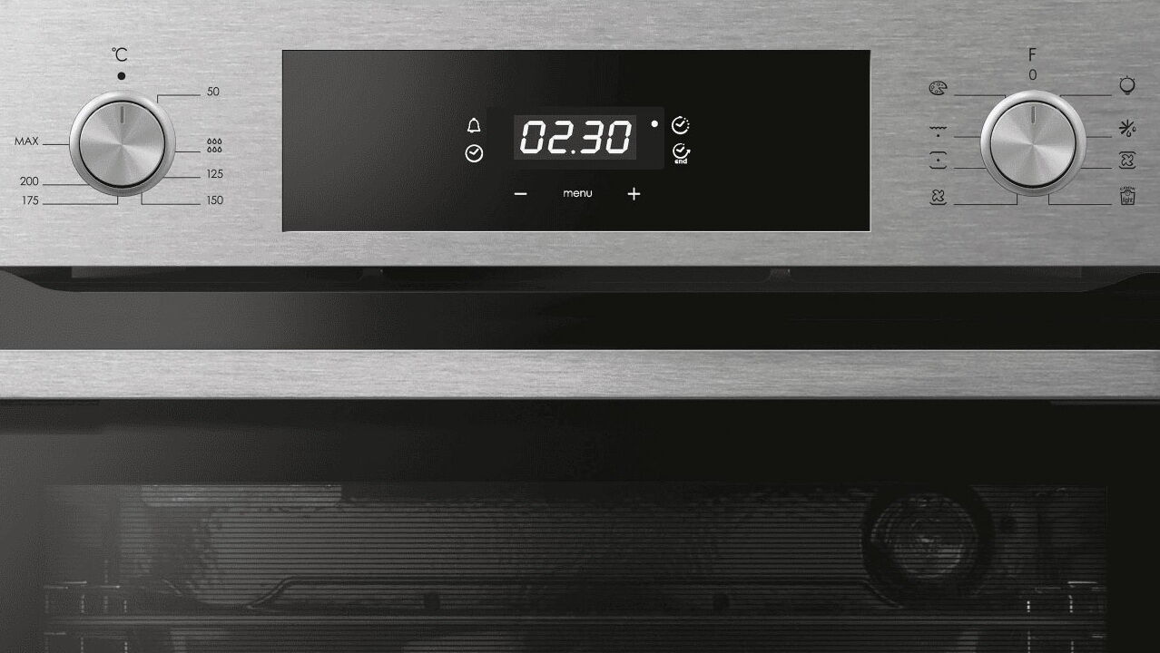 - Элегантный дизайн – сочетание нержавеющей стали, чёрного стекла и сенсорной панели придаёт духовке современный и дорогой вид.