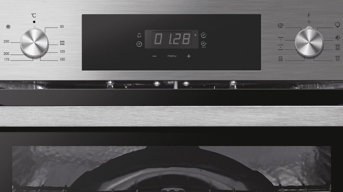 - Интуитивное сенсорное управление с LED-дисплеем – эргономичная панель объединяет поворотные переключатели и сенсорную панель с LED-дисплеем. Яркие зелёные символы и понятные пиктограммы обеспечивают быстрый доступ к настройкам, выбору одного из 8 режимов и программированию таймера с автоотключением.