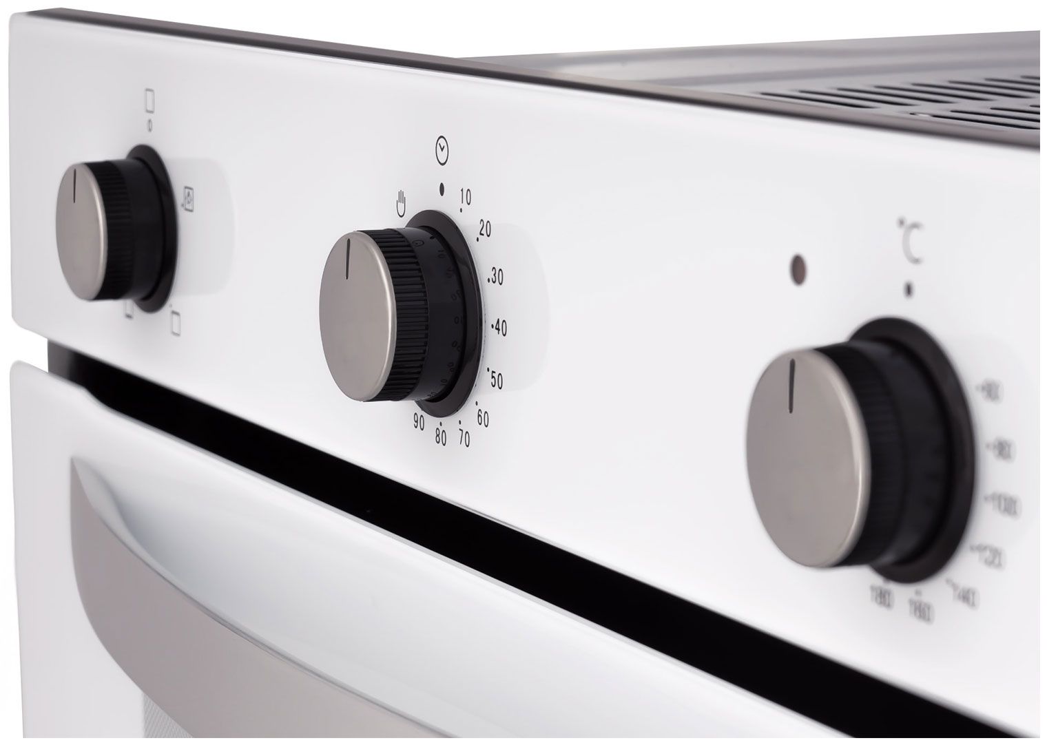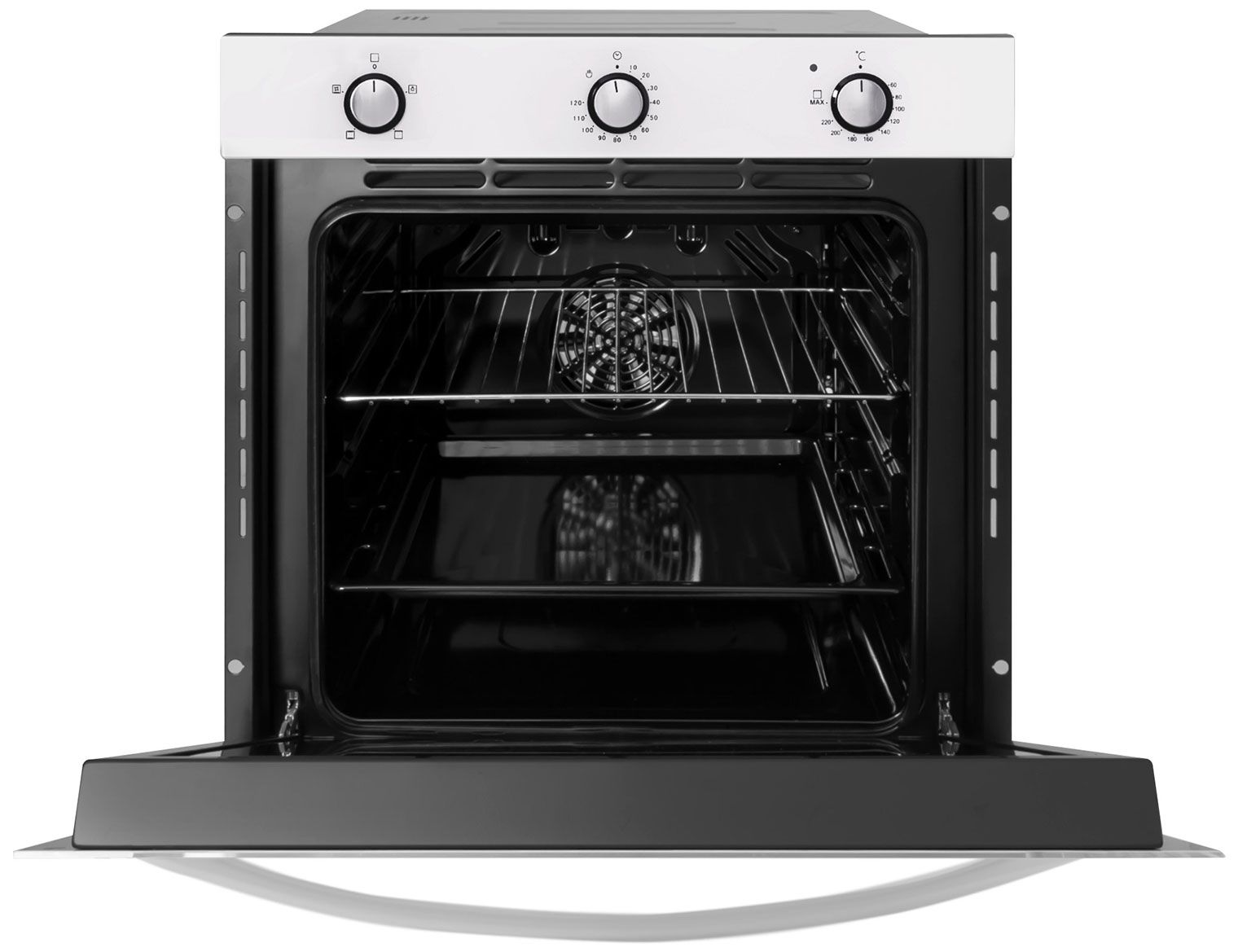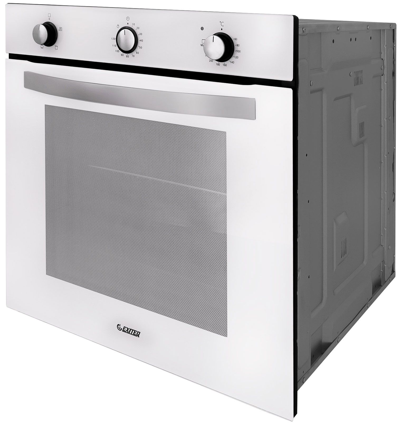 Встраиваемый электрический духовой шкаф Exiteq EXO-105 в белом цвете сочетает элегантный дизайн и практичную функциональность для ежедневного использования. Модель оснащена механическим управлением поворотными переключателями и системой двойной очистки.