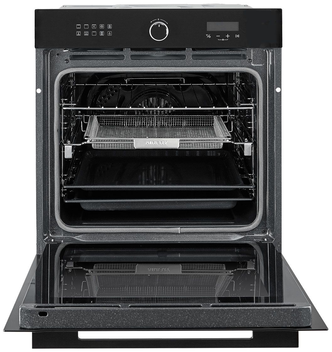 Встраиваемый электрический духовой шкаф Exiteq EXO-111 в черном цвете сочетает строгий лаконичный дизайн и передовые функции для профессионального результата готовки. Модель оснащена сенсорной панелью управления, дверцей с тройным остеклением и двумя системами очистки для максимального удобства.