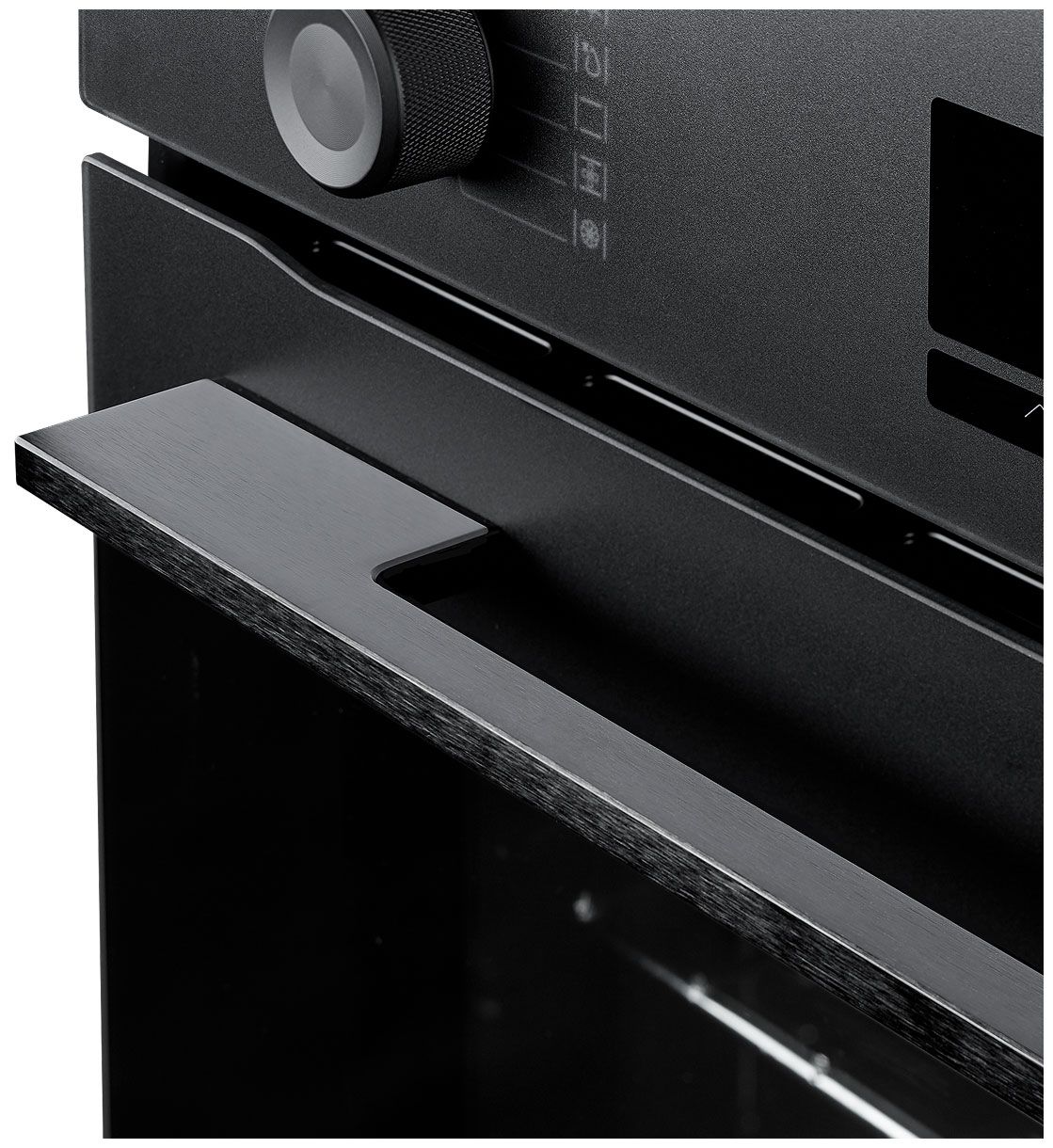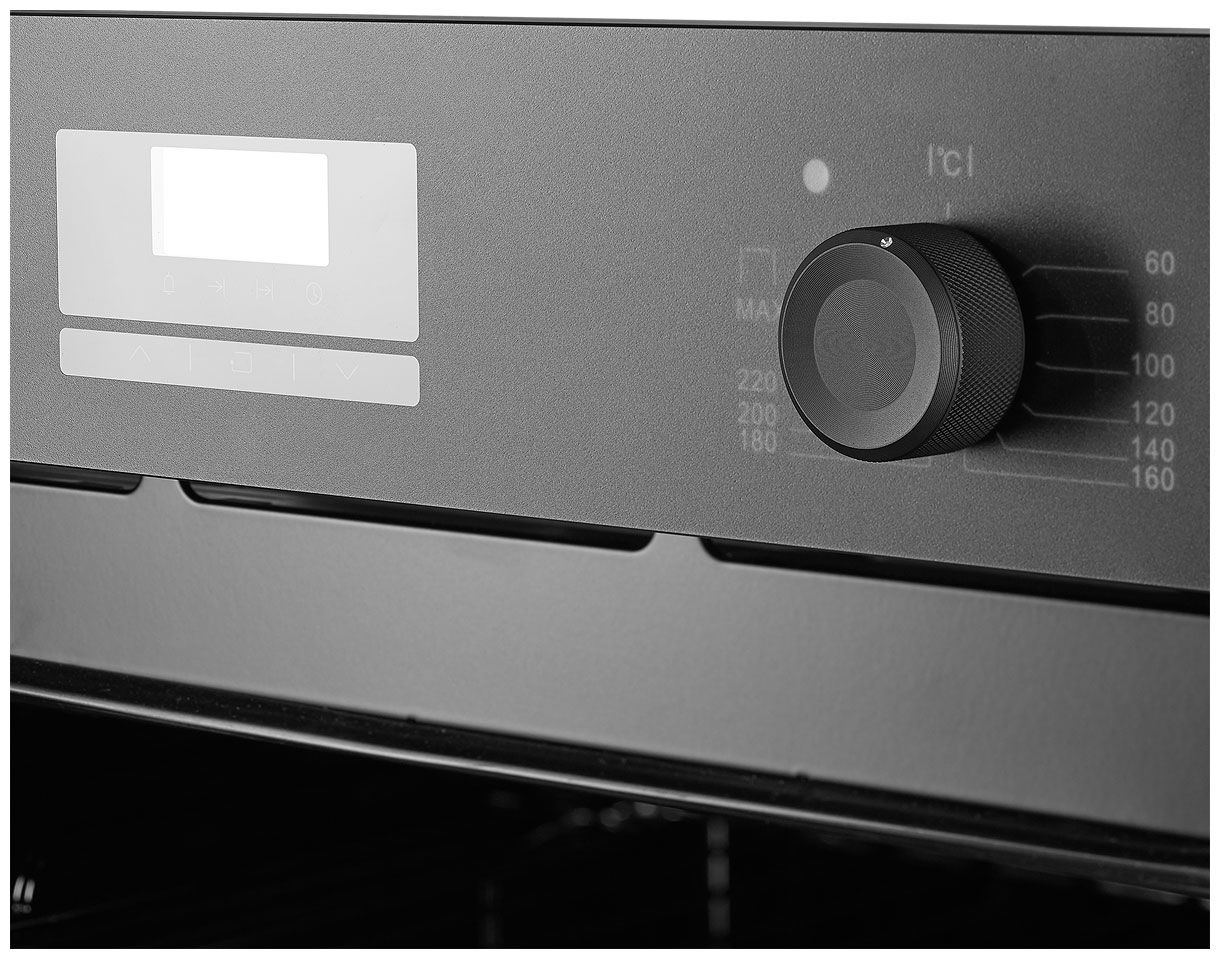 Встраиваемый электрический духовой шкаф Exiteq EXO-112 в черном матовом цвете сочетает лаконичный дизайн и инновационные кулинарные технологии. Модель оснащена электронным управлением с LED-дисплеем, телескопическими направляющими и системой паровой очистки.