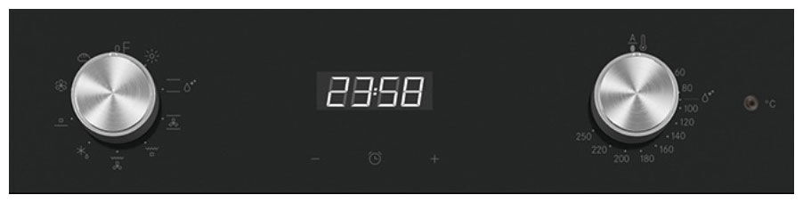 - Интеллектуальный гибрид управления – точная механика утапливаемых поворотных переключателей дублируется сенсорной панелью с крупным цифровым дисплеем. Регулируйте температуру касанием или классическим поворотом – выбирайте свой способ идеального контроля.