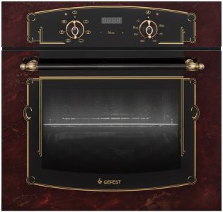 Духовой шкаф GEFEST ДА 622-02 К55 в эксклюзивном рубиновом цвете с фасадом, украшенным стеклом с рисунком "рубин", сочетает в себе элегантный ретро-стиль и современные технологии для безупречного результата готовки. Модель оснащена поворотными переключателями под бронзу, сенсорным таймером со звуковым сигналом и панорамным остеклением.