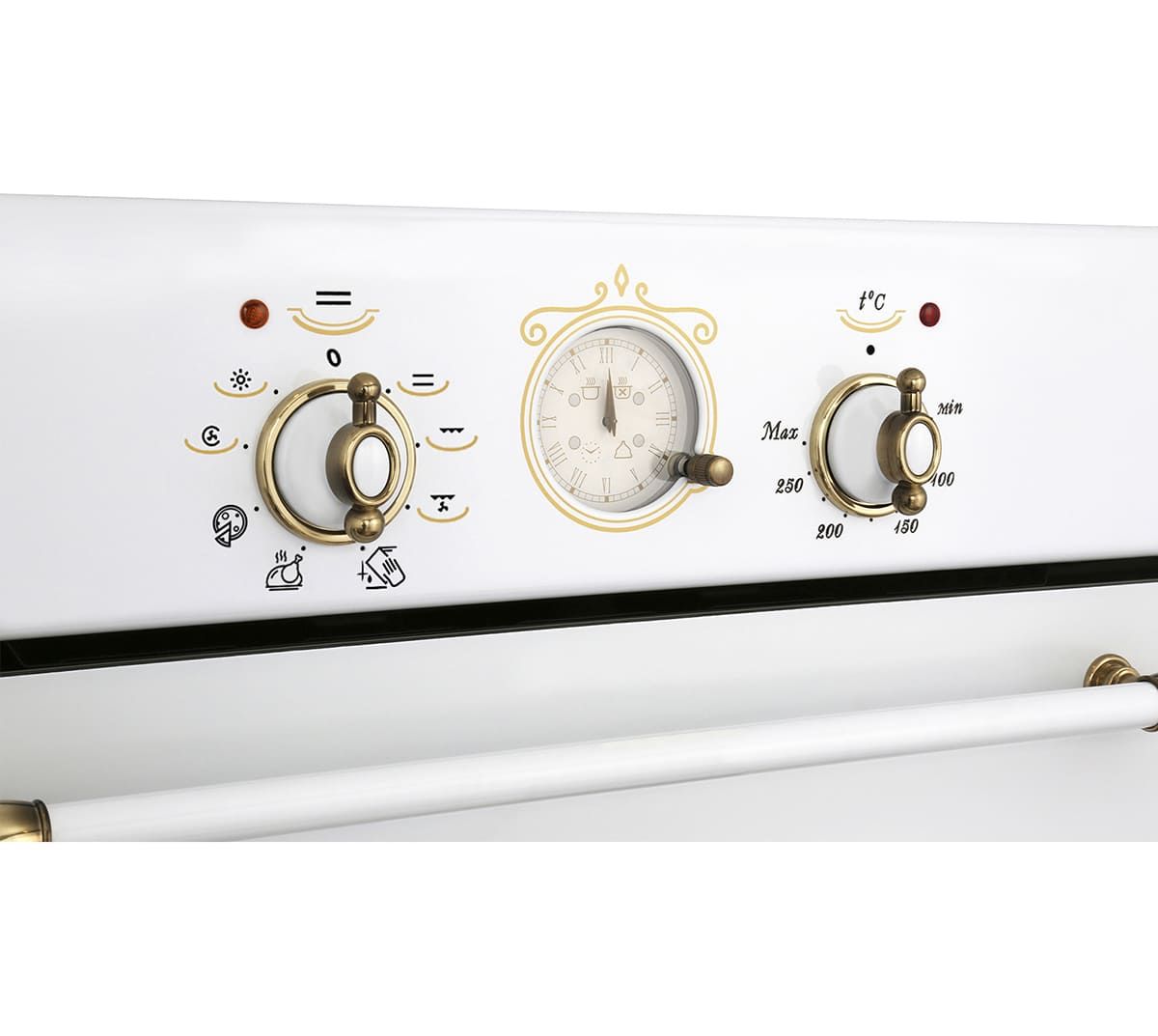 Духовой шкаф Gefest ЭДВ ДА 602-02 К82 — это воплощение узнаваемого ретро-стиля с характерными декоративными элементами. Модель выполнена в белом цвете (слоновая кость) с традиционным орнаментом на панели управления, что создает на кухне неповторимую атмосферу советской эпохи.