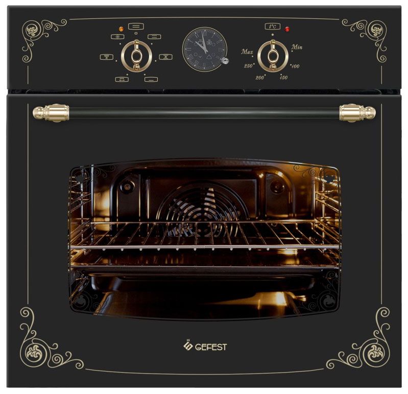 Встраиваемый электрический духовой шкаф GEFEST ЭД 602-02 К93 в черном цвете с декоративными элементами — это знаменитый «белорусский» ретро-стиль, знакомый многим. Модель сочетает в себе ностальгический облик с механической надежностью. Управляется интуитивно понятными поворотными переключателями и оснащена аналоговыми часами с таймером.