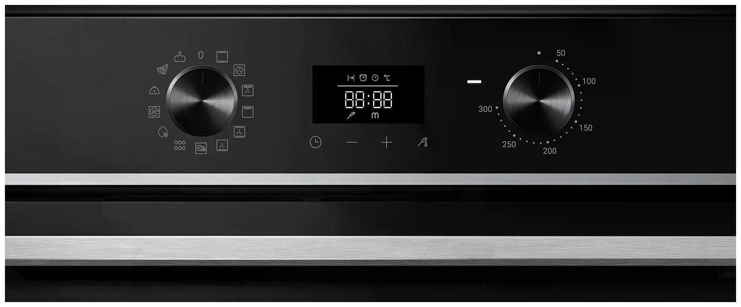 - Интуитивное управление с утапливаемыми регуляторами и LED-дисплеем – надежные механические регуляторы, которые утапливаются заподлицо, дополнены LED-дисплеем с белой подсветкой и таймером до 24 часов для точного контроля.