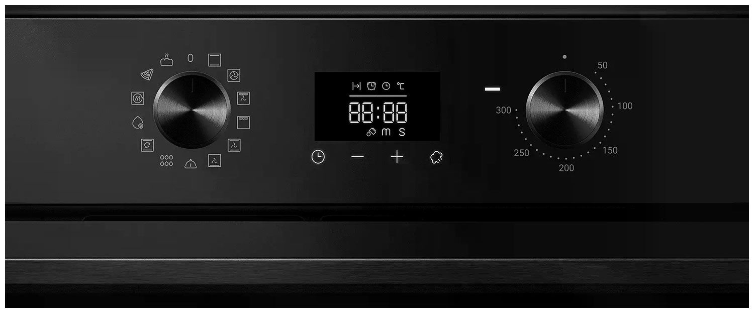 - Интуитивное управление с сенсорной панелью и утапливаемым поворотным переключателем – современный интерфейс с LED-дисплеем, белой подсветкой и цифровым таймером (до 24 ч) обеспечивает простой и точный контроль. Утапливаемые регуляторы добавляют эргономичности.
