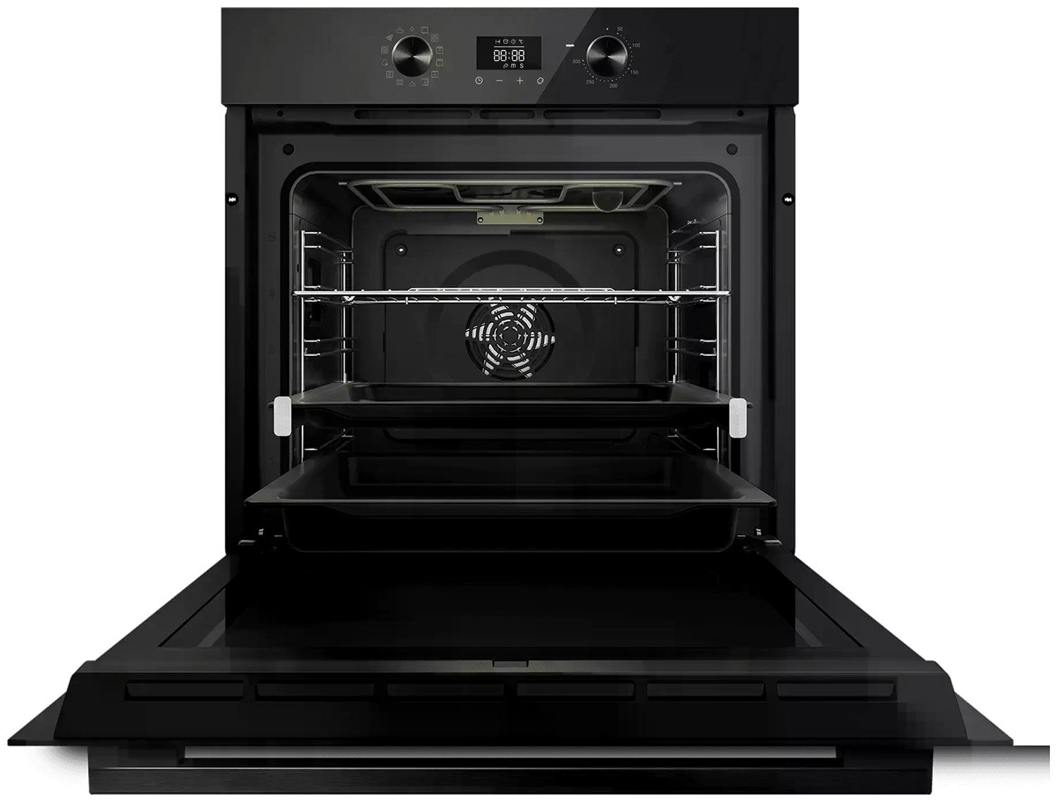 - Элегантный черный дизайн – сочетание черного цвета с черным стеклом и фурнитурой придает духовке современный и технологичный вид.