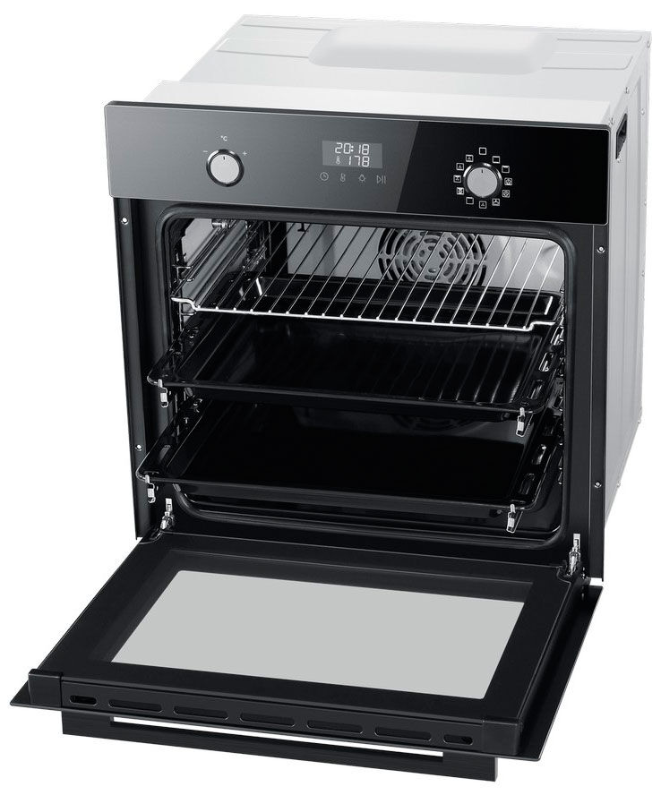 - Телескопические направляющие на 2 уровнях и плавное закрывание дверцы – противни выдвигаются плавно и полностью, обеспечивая безопасный доступ к готовящимся блюдам. Система плавного закрывания предотвращает хлопанье дверцы.