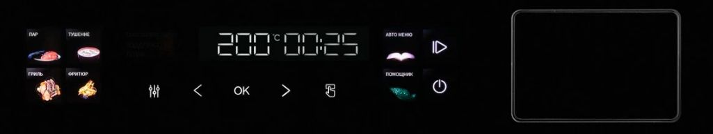 - Интеллектуальный парогенератор – автоматически дозирует подачу пара в зависимости от выбранной программы. Это позволяет готовить диетические, сочные блюда с сохранением витаминов (рыба, овощи, котлеты).