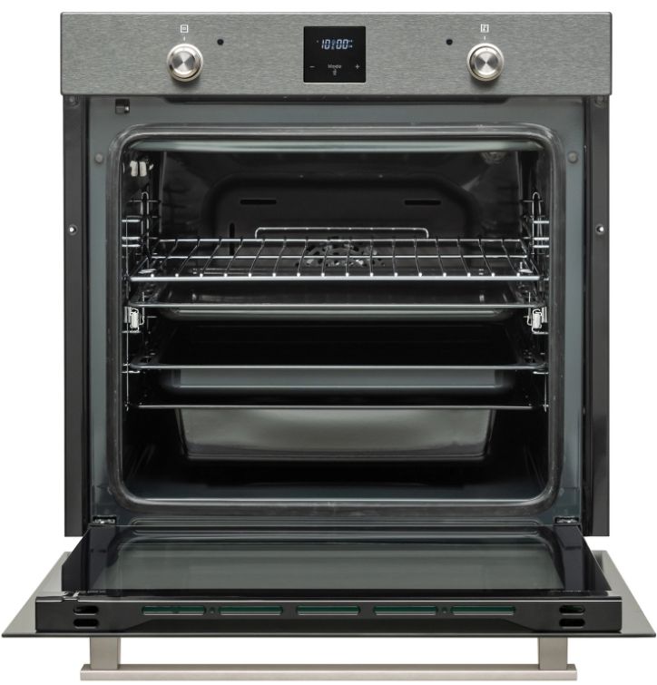 - Элегантный дизайн и удобство – покрытие Anti-Finger на панели управления устойчиво к отпечаткам. Телескопические направляющие на одном уровне обеспечивают удобный доступ к тяжелым противням.