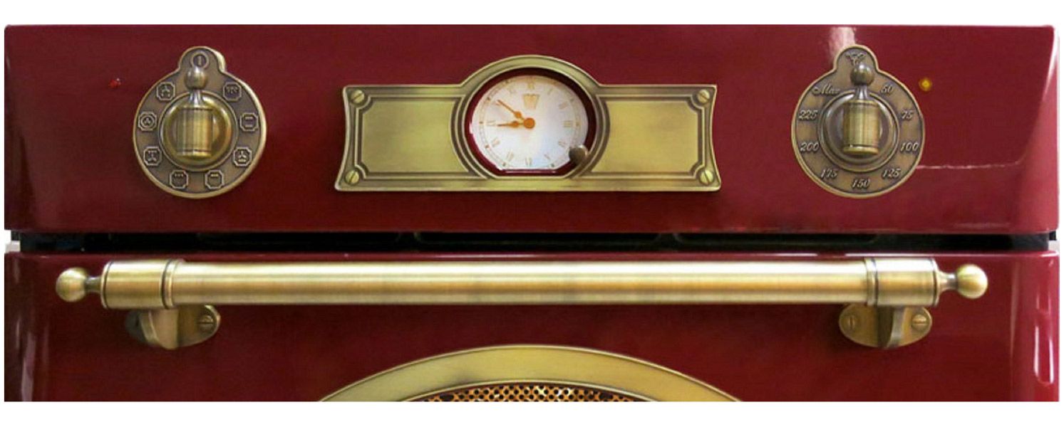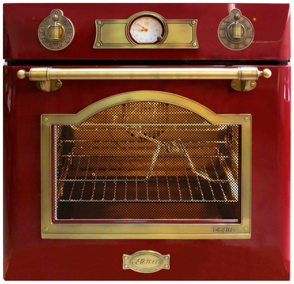 Электрическая духовка Kaiser EH 6355 RotEm – это уникальное сочетание винтажного дизайна в стиле «Empire» и современных технологий от немецкого бренда. Модель выполнена в бордово-красном цвете (Bordeaux Red) с высококачественным эмалевым покрытием и массивной бронзовой фурнитурой, что создает неповторимый ретро-шарм на вашей кухне.