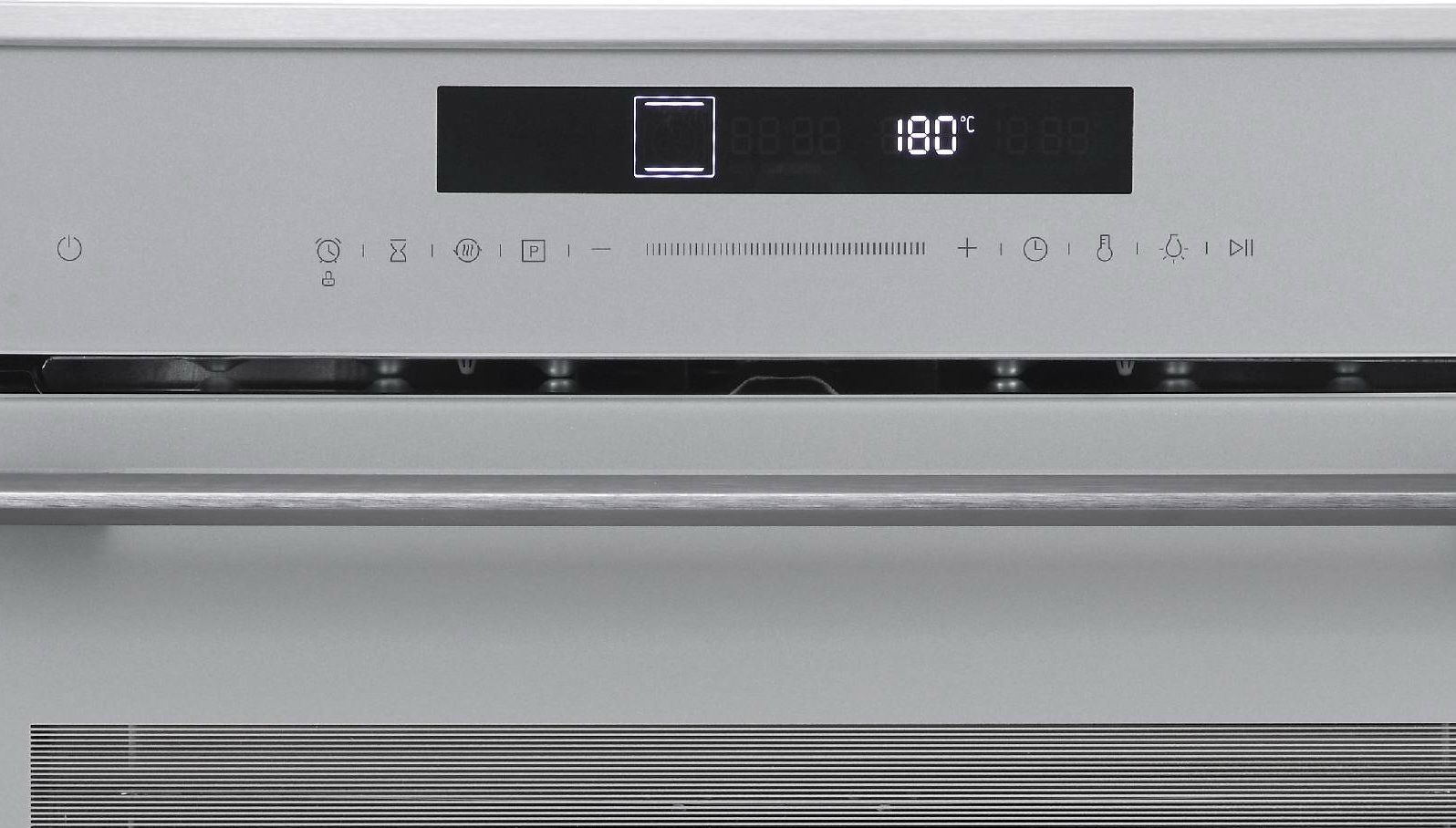 - Сенсорное управление Full Touch Control – современная панель с большим LED-дисплеем белого цвета. Обеспечивает интуитивный выбор режимов, температуры и времени, а также доступ к функциям таймера, отложенного старта и термощупа.