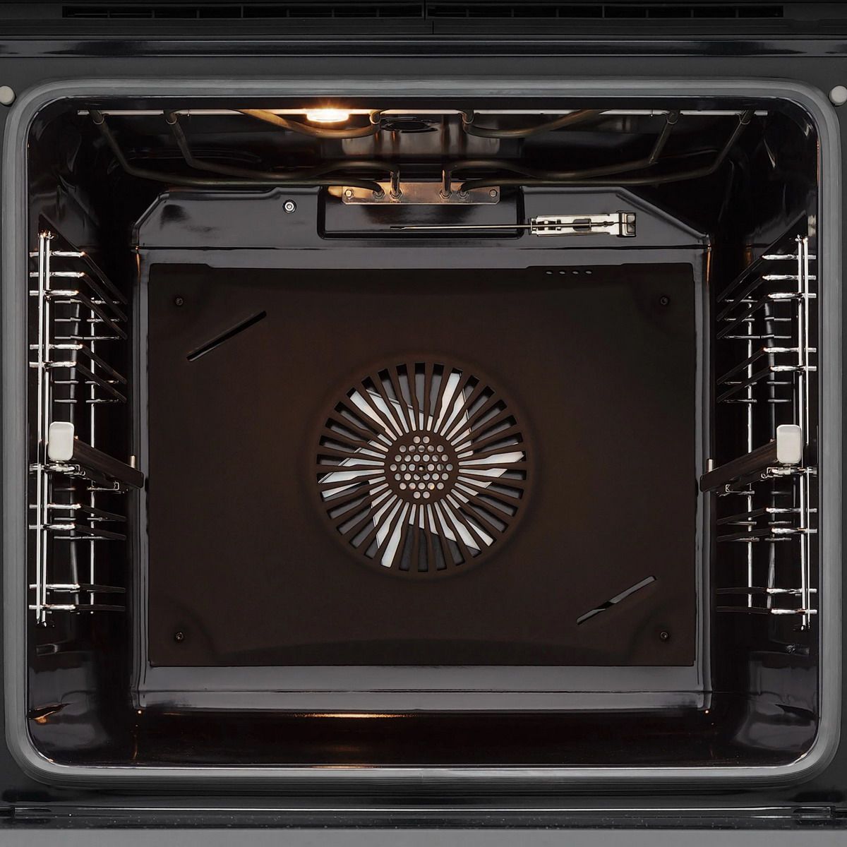 - Каталитическая очистка — задняя стенка духового шкафа имеет специальное покрытие, которое расщепляет жир при нагреве. Упрощает уход за духовкой.