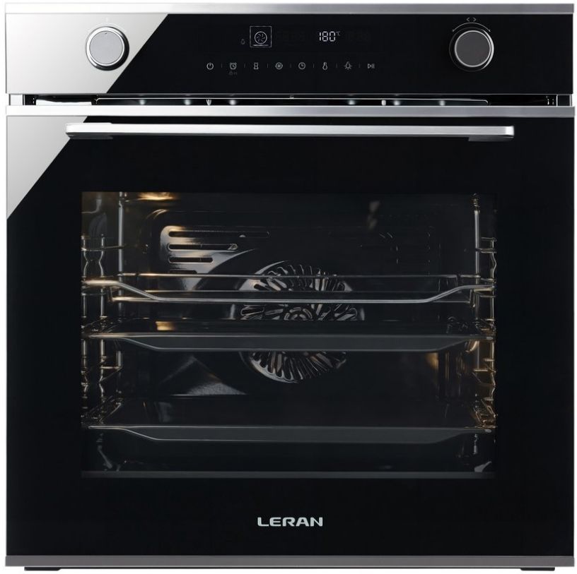 Встраиваемый электрический духовой шкаф LERAN EOE 6785 BST в стильном черном цвете сочетает элегантный дизайн и передовые технологии для комфортного использования. Модель оснащена комбинированной системой управления с дисплеем и утапливаемыми переключателями.